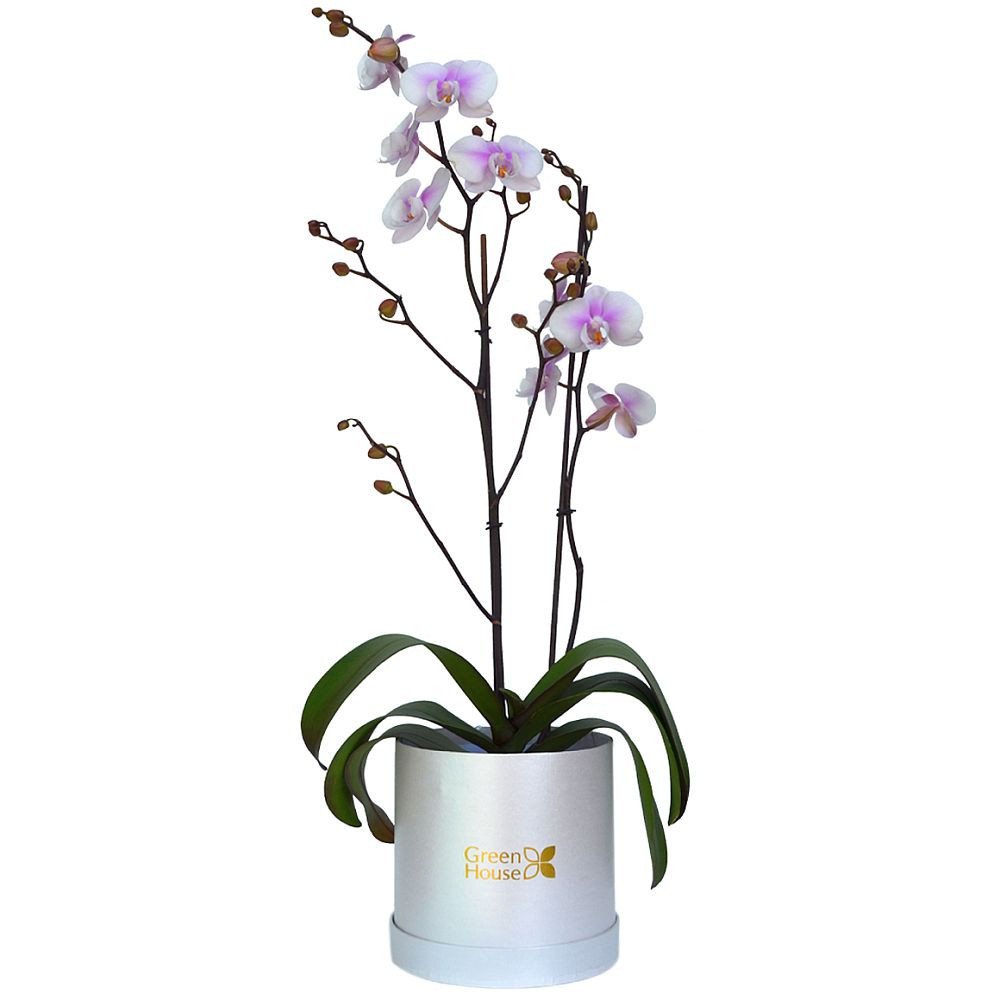 Exclusiva planta de Orquídea Phalaenopsis Baby, en Luxury Box blanco. Entre 55 y 65 cm. El color de las flores puede variar según disponibilidad....