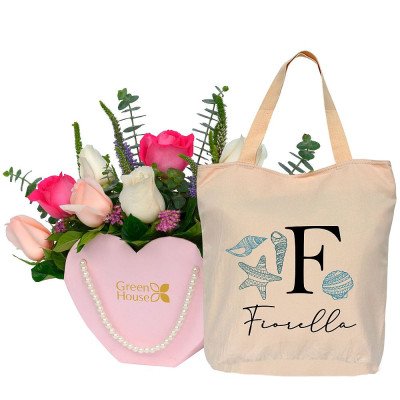 Exclusivo ramo de 12 rosas y follaje fino en papel decorativo especial color dorado, acompañado de una foto (impresa en papel fotográfico). Color...
