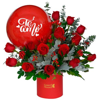 Delicado arreglo floral de 9 rosas en fino florero de vidrio importado. Color de rosas según elección.