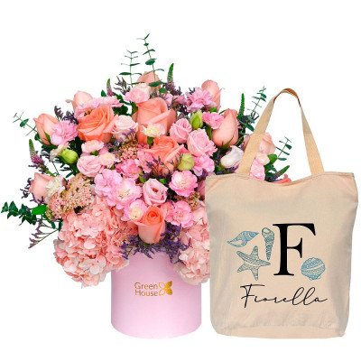 6 rosas y follaje fino en florero de vidrio importado. 40 cm. alto. Color de rosas según elección.
