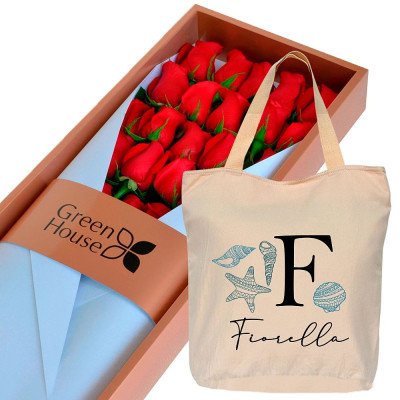 12 rosas en exclusiva caja Colección Glam Gold con tapa de mica transparente. 65 cm. Largo. Color de las rosas según elección.