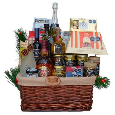 Contiene: Whisky Chivas Regal 12 años (750 ml.), Vino Lan Reserva (750 ml.), Pisco Viñas de Oro Mosto Verde (500 ml.), Asti Riccadonna (750 ml.), Jamón Serrano La Leyenda, Queso Brie Pere Toinou, Queso Camembert Pere Toinou, Aceite de Oliva Extra Virgen Almazara, Jarrita de Aceite de Oliva con Finas Hierbas, Aceitunas Verde con Castaña, Aceituna Verde con Rocoto, Capricho de Aceitunas, Tapenade de Aceituna con Quinua, Pate a las Tres Pimientas Pata Negra, Miel de Abeja, Mix de Frutos secos Almazara, Tostaditas artesanales de finas hierbas, Palitos de Sesamo Sfornatini, Bombones Ferrero Rocher, Panetón italiano Maisa Il (750 gr.), Turrón Imperial Delaviuda (200 gr.). En canasta de mimbre.