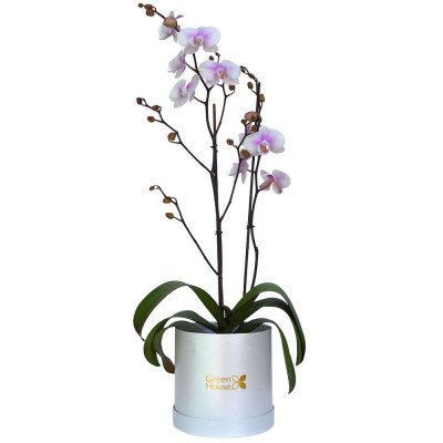 Exclusiva planta de Orquídea Phalaenopsis Baby con doble vara, en fina maceta de cerámica decorativa importada. Entre 35 y 40 cm. El color de las...