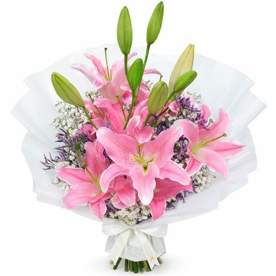 Delicado ramo de 12 rosas rojas, hortensias, astromelias y follaje fino en telas decorativas.