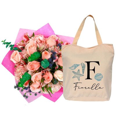 Alegre ramo de rosas y flores variadas en papel decorativo especial.